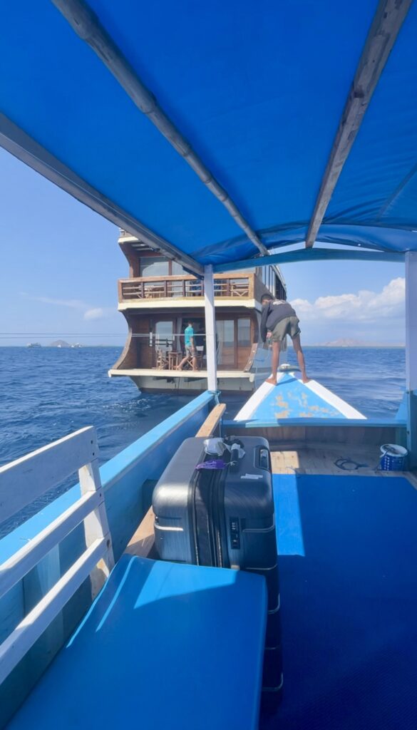 The fast boat pulled right up to our balcony at the back of the phinisi. The crew loaded our luggage as we said our goodbyes.