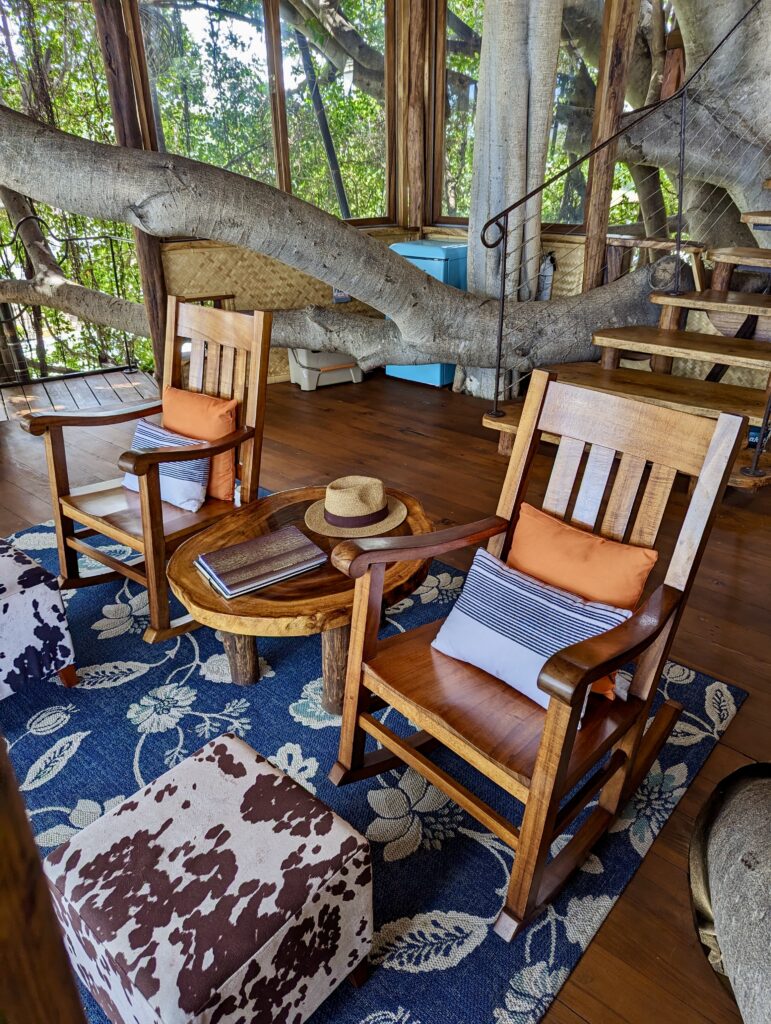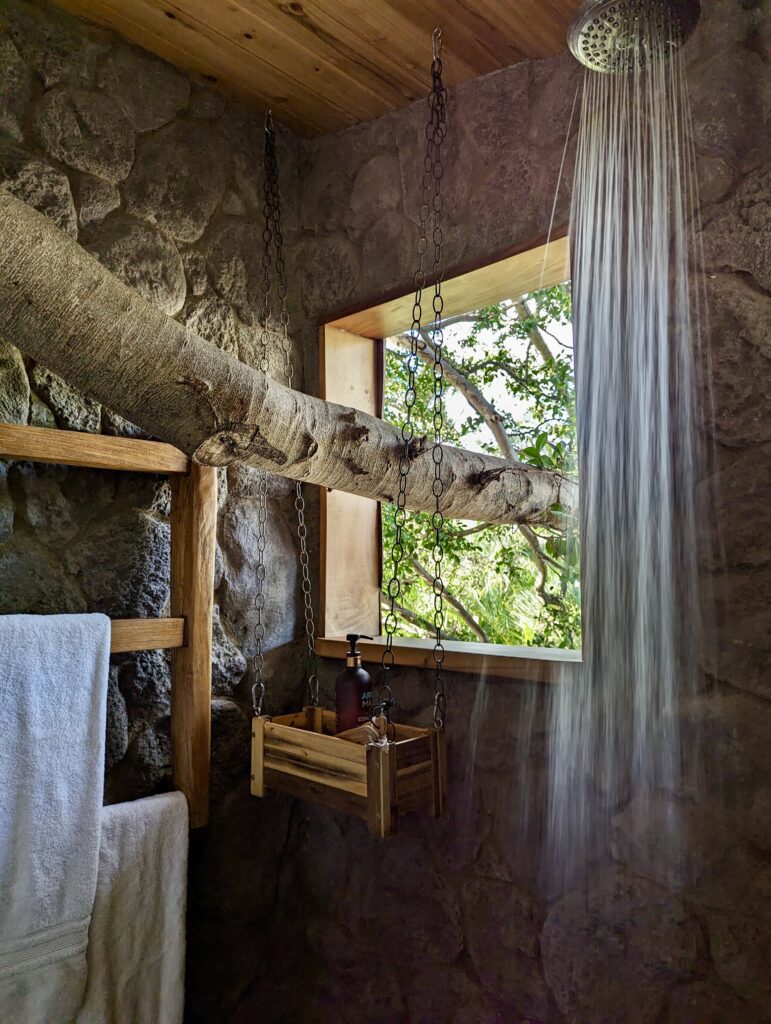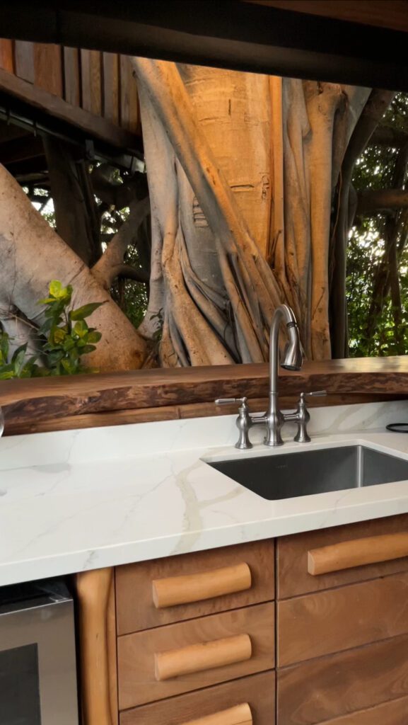 The treehouse’s design seamlessly blends with the natural surroundings, allowing me to feel connected to nature without sacrificing comfort. From the carefully chosen furnishings and luxury finishes to the high-end amenities, every detail has been thoughtfully curated. The Mahina Treehouse is surrounded by beautiful jungle-like flora, creating a private oasis.